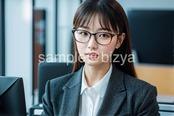 精度を重視したメガネ姿の若手女性OLの写真素材が新登場しました。デスクワーク中のリアルな表情は、ビジネスシーンにぴったりです。清潔感や知性を感じさせるメガネ姿で、プロフェッショナルな印象を演出できます。